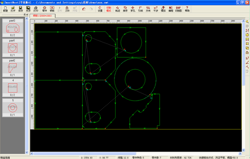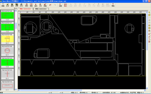 5、先進(jìn)的全自動(dòng)套料功能。采用新的計(jì)算智能技術(shù)和相關(guān)科研成果,對任意復(fù)雜形狀的異形零件進(jìn)行全自動(dòng)真實(shí)形狀套料,計(jì)算過程瞬間完成,優(yōu)化效果堪稱完美,材料利用率平均提高5%。
